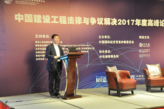 2017年12月26日,由貿(mào)仲委主辦的“中國(guó)建設(shè)工程法律與爭(zhēng)議解決2017年度高峰論壇”于北京成功舉行。本屆論壇的主題為“中國(guó)企業(yè)海外承包工程的法律風(fēng)險(xiǎn)與啟示”,貿(mào)仲委仲裁院副院長(zhǎng)趙健、全國(guó)律師協(xié)會(huì)副會(huì)長(zhǎng)張學(xué)兵出席論壇并致辭。