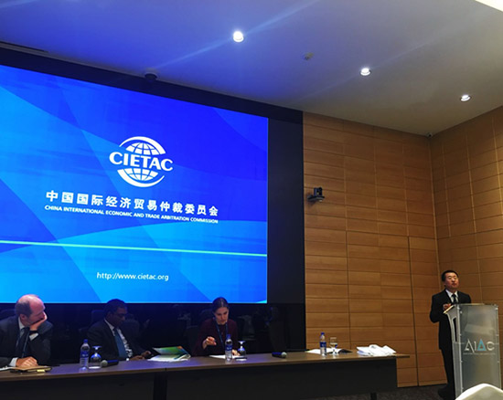 李虎副秘書長以“從貿(mào)仲委視角看一帶一路爭端解決”為題發(fā)表演講,認(rèn)為“一帶一路”建設(shè)客觀上要求中國仲裁國際化,國際機(jī)構(gòu)之間應(yīng)加強(qiáng)合作,同時(shí),一帶一路建設(shè)的深入推進(jìn)和機(jī)構(gòu)間合作的加強(qiáng)會(huì)催生新的爭端解決平臺(tái),并從仲裁員隊(duì)伍、仲裁規(guī)則、機(jī)構(gòu)建設(shè)、域外發(fā)展、仲裁實(shí)踐和發(fā)展趨勢等方面詳細(xì)介紹了貿(mào)仲委國際化發(fā)展進(jìn)程,展示了中國仲裁適應(yīng)“一帶一路”日益國際化的發(fā)展方向。最后,李虎副秘書長和其他演講者共同回答了參會(huì)者的提問,與參會(huì)者進(jìn)行了積極的互動(dòng)交流。