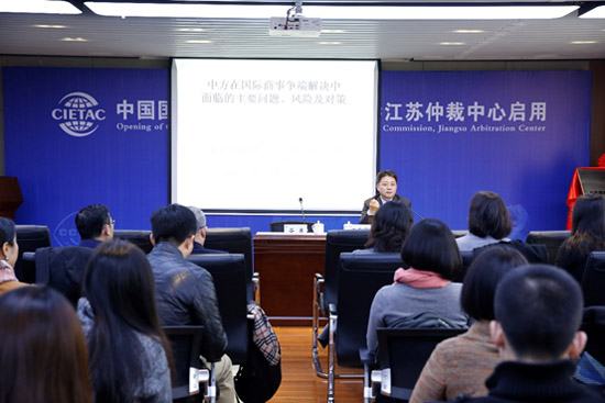 活動(dòng)期間,貿(mào)仲委江蘇仲裁中心舉辦了國(guó)際仲裁專題研討會(huì)。貿(mào)仲委資深仲裁員王雪華以中方在國(guó)際商事爭(zhēng)端解決中面臨的主要問題、風(fēng)險(xiǎn)及對(duì)策為題進(jìn)行了專題講座,并對(duì)交叉盤問證人等國(guó)際商事仲裁中的前沿?zé)狳c(diǎn)問題進(jìn)行了經(jīng)驗(yàn)介紹。與會(huì)嘉賓進(jìn)行了熱烈討論和交流。