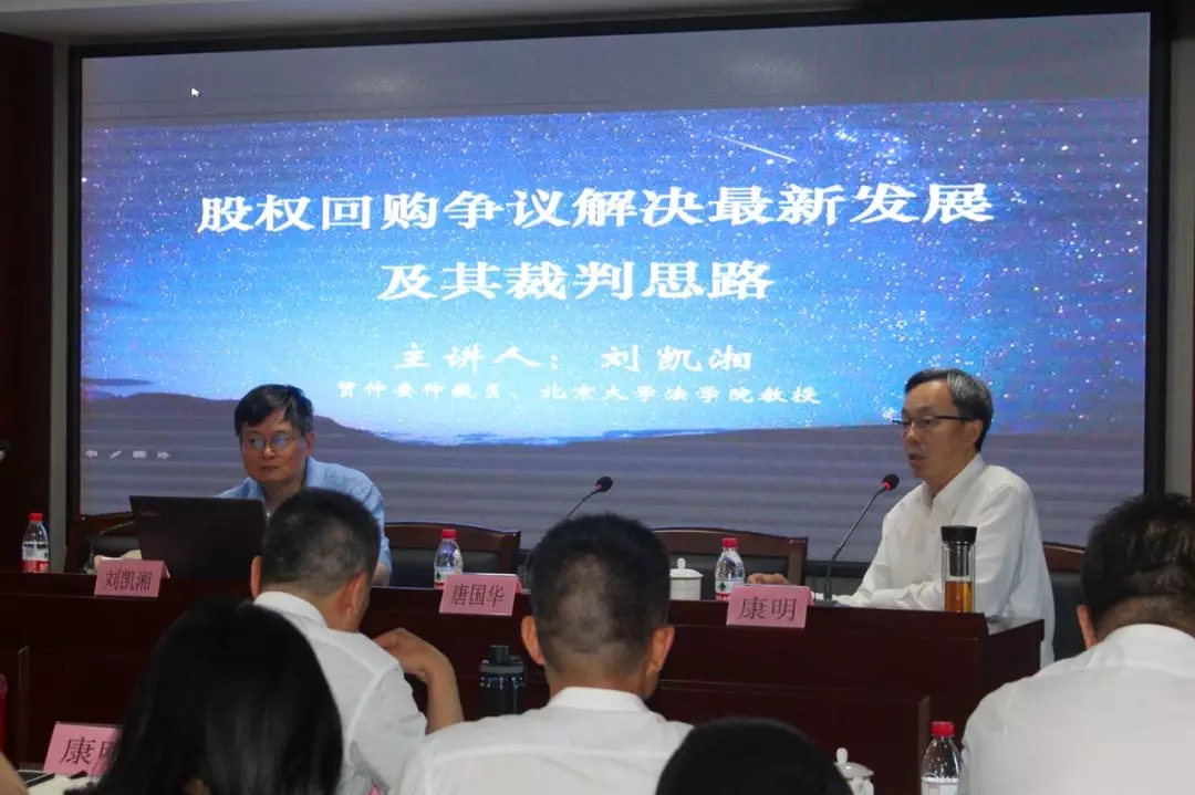 2019年7月18日,由中國國際經(jīng)濟貿易仲裁委員會(貿仲委)浙江分會主辦,浙江省律師協(xié)會、杭州市中小企業(yè)協(xié)會支持舉辦的關于“股權回購爭議解決最新發(fā)展及其裁判思路”的講座在浙江杭州成功舉辦。此次講座特別邀請貿仲委資深仲裁員、北京大學法學院教授劉凱湘先生主講,來自企業(yè)、律所、高校、機關單位的150余名仲裁員、企業(yè)法務和律師等專業(yè)人士到場聆聽了此次講座。此次講座還吸引了上海、寧波等浙江其他地區(qū)的業(yè)界同仁專程前來。