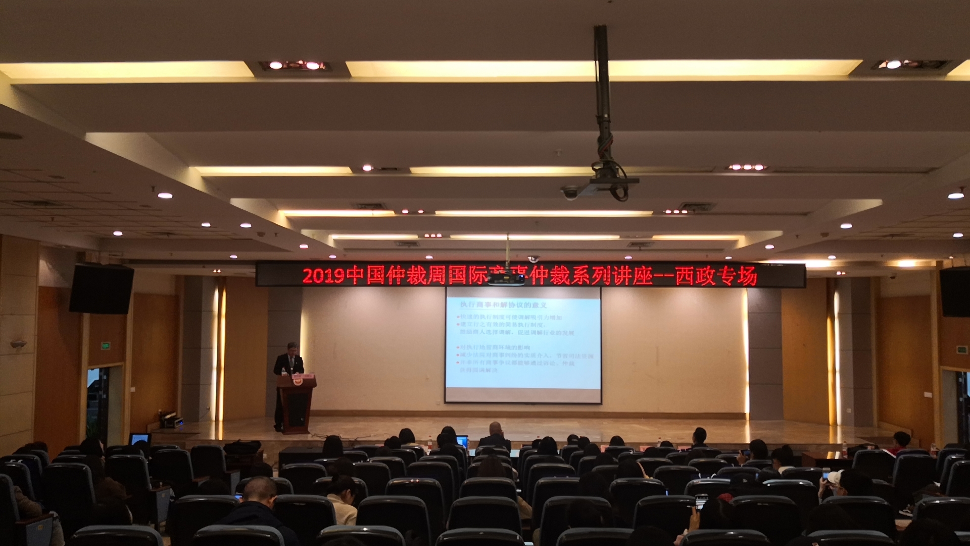 2019年11月2日,中國(guó)仲裁周國(guó)際商事仲裁系列講座在西南政法大學(xué)成功舉辦。商務(wù)部條約法律司行政法律處處長(zhǎng)、中國(guó)國(guó)際經(jīng)濟(jì)貿(mào)易仲裁委員會(huì)(“貿(mào)仲”)仲裁員溫先濤先生作了題為“從《紐約公約》到《新加坡公約》”的專題講座。此次講座由西南政法大學(xué)國(guó)際法學(xué)院院長(zhǎng)張曉君教授主持,由康實(shí)律師事務(wù)所合伙人、貿(mào)仲仲裁員熊彥昆先生擔(dān)任點(diǎn)評(píng)人。100余名老師和學(xué)生參加了此次講座。