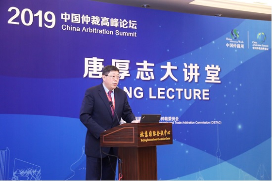 2019年11月5日,在2019年中國(guó)仲裁周期間由貿(mào)仲舉辦的第三屆“唐厚志大講堂(TANG Lecture)”在京成功舉行。貿(mào)仲副主任兼秘書長(zhǎng)王承杰先生出席活動(dòng),匯仲律師事務(wù)所管理合伙人費(fèi)寧先生主持了大講堂活動(dòng),國(guó)際商事仲裁理事會(huì)榮譽(yù)主席多諾萬(wàn)(Donald Donovan)先生發(fā)表演講,來(lái)自30多個(gè)國(guó)家和地區(qū)的中外仲裁界200多名嘉賓親臨現(xiàn)場(chǎng)。繼2017年“唐厚志大講堂”活動(dòng)開(kāi)展以來(lái),中外各界仲裁人士對(duì)大講堂活動(dòng)反響熱烈,唐厚志先生60年來(lái)為仲裁事業(yè)不懈奮斗的工作場(chǎng)景極大的激勵(lì)了中外仲裁人。