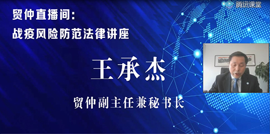 王秘書長表示,仲裁行業(yè)在疫情時期仍應當砥礪前行,貿仲更應發(fā)揮帶頭作用,持續(xù)助力國內外企業(yè)積極應對因疫情產生的法律風險。為此,貿仲攜手騰訊開設了“貿仲直播間:戰(zhàn)疫風險防范法律講座”,希望為各行業(yè)提供切實有效的法律指引。