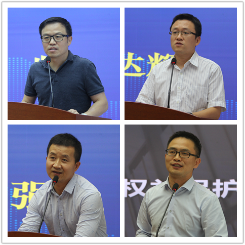(主講人:從左至右、從上至下依次為滿幫集團副總裁及總法律顧問慎凱、中國出口信用保險公司溫州辦事處主任助理鄭達輝、溫州市貿(mào)促會合作聯(lián)絡(luò)部三級主任科員鐘國強 、溫州大學(xué)法學(xué)院副院長 繆心毫)