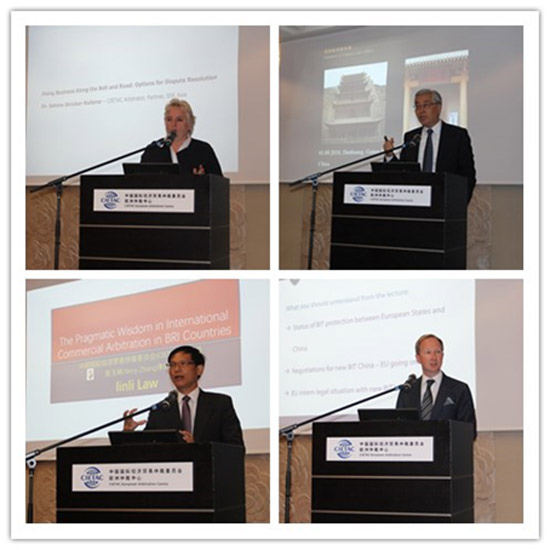 “一帶一路與仲裁”論壇在揭牌儀式后舉行。Arthur Wolff博士、趙杭博士、Sabine Stricker-Kellerer博士、張玉林律師、孫華偉律師、Mag Ralph Kilches先生、貿(mào)仲委國際案件處張燁處長和Alice Meissner博士8位貿(mào)仲委仲裁員和專家圍繞“一帶一路”建設(shè)法律風(fēng)險防范、仲裁在解決“一帶一路”商事爭議中的地位與作用、奧地利作為仲裁地的優(yōu)勢、貿(mào)仲委的仲裁實踐經(jīng)驗等方面進行深入淺出的介紹和講解,研討會獲得熱烈反響。