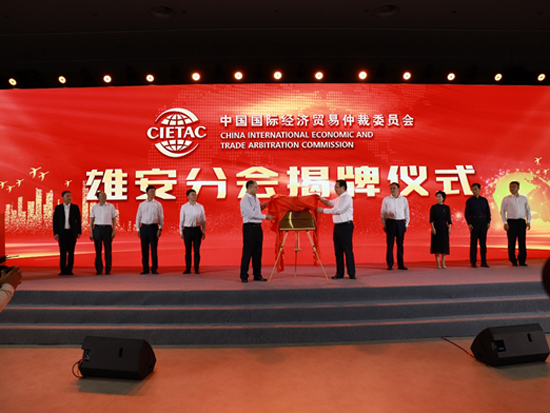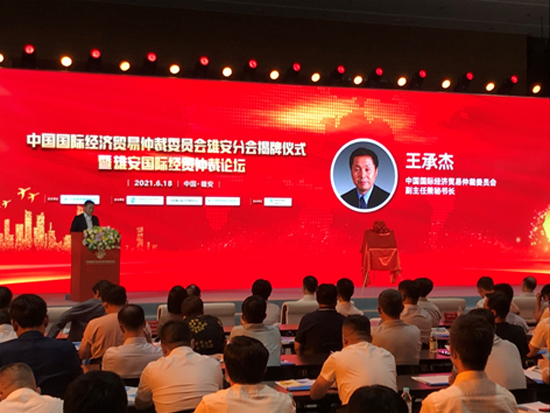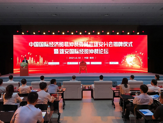 2021年6月18日,中國國際經(jīng)濟(jì)貿(mào)易仲裁委員會(貿(mào)仲)雄安分會揭牌儀式暨雄安國際經(jīng)貿(mào)仲裁論壇在雄安新區(qū)成功舉行。中國國際貿(mào)易促進(jìn)委員會黨組成員、副會長盧鵬起,河北省委常委、省政府副省長、雄安新區(qū)黨工委書記、管委會主任張國華共同為貿(mào)仲雄安分會揭牌。河北省司法廳領(lǐng)導(dǎo)宣讀《關(guān)于同意中國國際經(jīng)濟(jì)貿(mào)易仲裁委員會雄安分會備案的函》。河北省司法廳、河北省貿(mào)促會、河北省律師協(xié)會、河北雄安新區(qū)黨政辦公室、黨群工作部、改革發(fā)展局、公共服務(wù)局、綜合執(zhí)法局、河北自貿(mào)試驗(yàn)區(qū)雄安片區(qū)管委會、河北雄安新區(qū)中級人民法院、河北雄安新區(qū)稅務(wù)局、雄縣、容城、安新縣人民政府、雄安集團(tuán)、中國農(nóng)業(yè)銀行河北雄安分行等部門和單位的有關(guān)領(lǐng)導(dǎo)同志,以及參與雄安新區(qū)建設(shè)的有關(guān)企業(yè)負(fù)責(zé)人,來自仲裁界、企業(yè)界的專家、法官、律師及學(xué)者共計(jì)200多人,現(xiàn)場見證了這一重要?dú)v史時(shí)刻。