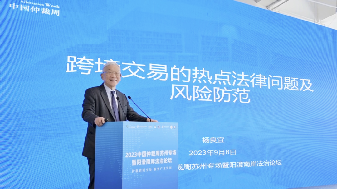 9月8日,2023中國仲裁周蘇州專場暨陽澄南岸法治論壇在蘇州成功舉辦。本次論壇由中國國際經(jīng)濟(jì)貿(mào)易仲裁委員會(huì)(CIETAC,簡稱“貿(mào)仲”)聯(lián)合新加坡國際仲裁中心(SIAC,簡稱“新仲”)、蘇州仲裁委員會(huì)、蘇州市律師協(xié)會(huì)和蘇州工業(yè)園區(qū)司法局共同主辦,中國國際經(jīng)濟(jì)貿(mào)易仲裁委員會(huì)江蘇仲裁中心(簡稱“貿(mào)仲江蘇中心”)協(xié)辦。中國國際經(jīng)濟(jì)貿(mào)易仲裁委員會(huì)仲裁院副院長、貿(mào)仲江蘇中心秘書長谷巖,新仲首席執(zhí)行官林美恩,蘇州市司法局黨組書記、局長王侃,蘇州工業(yè)園區(qū)黨工委委員、管委會(huì)副主任、政法委書記姚文蕾出席本次論壇。論壇特邀貿(mào)仲資深仲裁員、最高人民法院國際商事法庭專家委員會(huì)委員、亞太區(qū)域仲裁組織(APRAG)原主席、上海國際仲裁學(xué)院主席楊良宜先生發(fā)表主旨演講。開幕式由蘇州工業(yè)園區(qū)司法局副局長吳碩希主持。