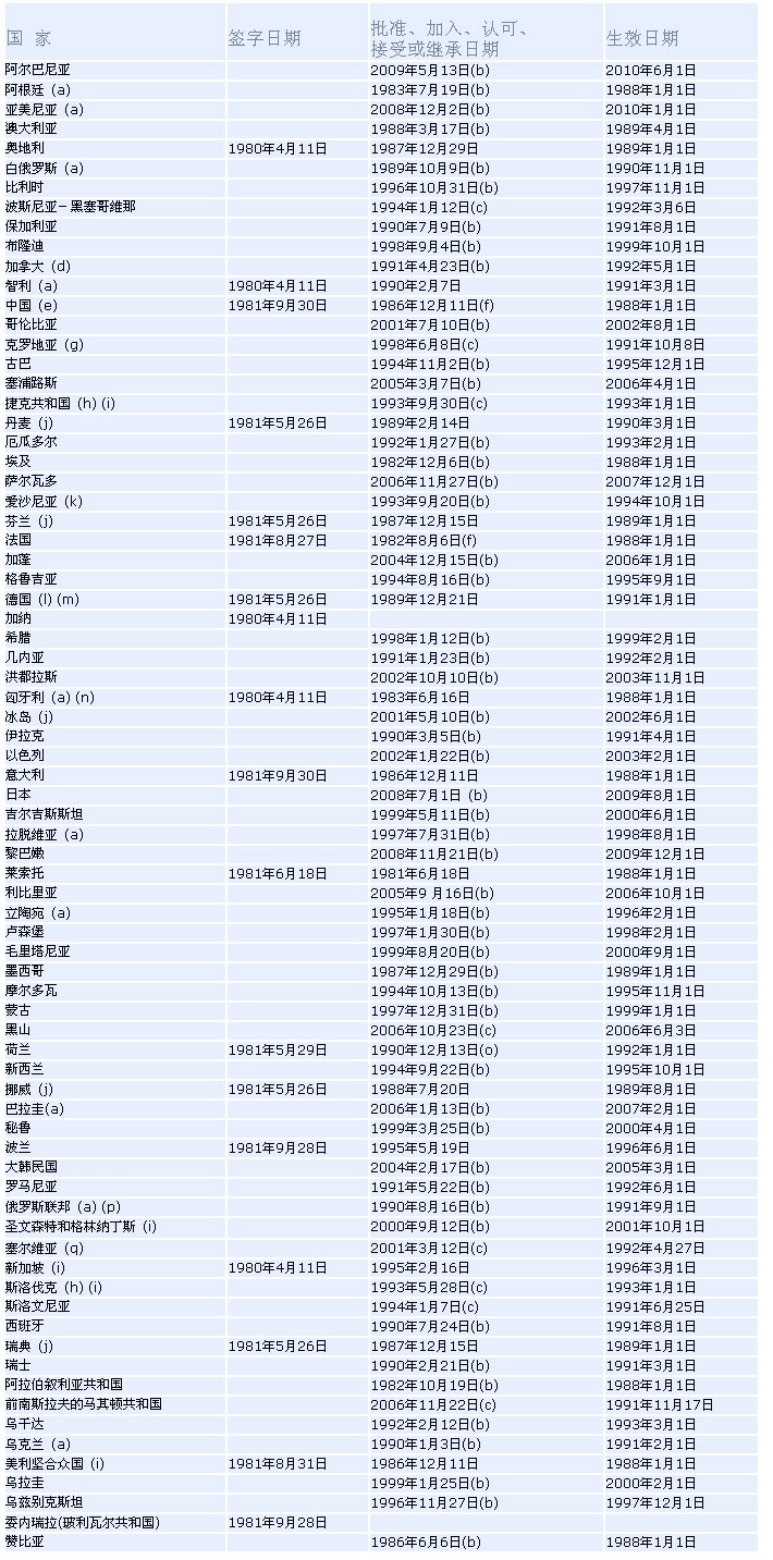(h) 前捷克斯洛伐克1981年9月1日簽署公約,1990年3月5日交存批準書,公約于1991年4月1日對前捷克斯洛伐克生效。 1993年5月28日和1993年9月30日斯洛伐克共和國和捷克共和國先后分別交存了繼承書,均自其繼承日期1993年1月1日起生效。 (