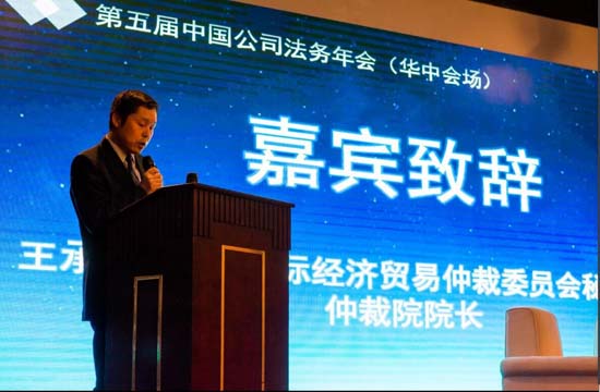 中國國際經(jīng)濟貿(mào)易仲裁委員會秘書長王承杰在致辭中指出,加強公司法務(wù)人員、律師的互動交流確有必要,貿(mào)仲委愿與法制日報社一起為大家提供公司法務(wù)年會這個交流平臺。今年是貿(mào)仲誕生60周年。貿(mào)仲的發(fā)展在完善仲裁制度、提升中國仲裁國際地位等方面為中國仲裁事業(yè)的發(fā)展做出了巨大貢獻,最近還將承辦中國仲裁高峰論壇,肩負著推動中國打造成為國際仲裁中心的光榮使命。同時希望通過貿(mào)仲委湖北分會這個平臺,進一步促進華中地區(qū)仲裁界、公司法務(wù)界和律師界的溝通互動與交流合作,為打造中國仲裁的中部高地,促進湖北開放型經(jīng)濟的發(fā)展和長江經(jīng)濟帶建設(shè)作出更大的貢獻!