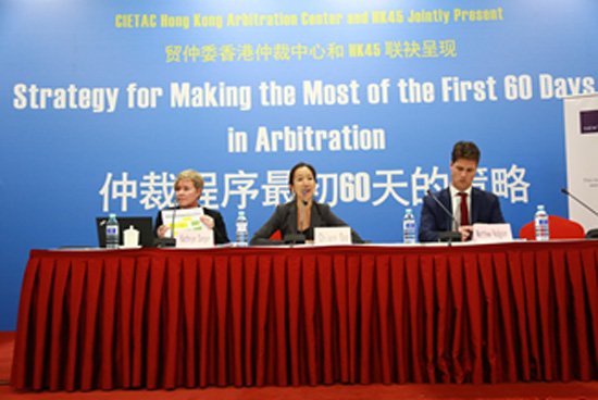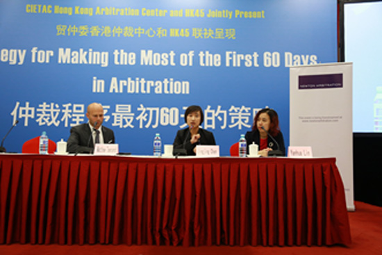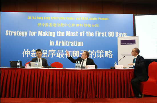 2017年9月19日下午,作為中國仲裁周期間重要活動之一,貿(mào)仲委香港仲裁中心與香港青年仲裁組織HK45聯(lián)合舉辦了主題為“仲裁程序最初60天的策略”專題研討會,與200余名現(xiàn)場與會的仲裁員、公司法務(wù)和律師以及逾1500名國內(nèi)外線上從事仲裁業(yè)務(wù)的觀眾共同討論了仲裁程序初期的實務(wù)問題。貿(mào)仲委副主任兼秘書長王承杰先生出席研討會并做主旨演講,HK45代表Tomas Furlong先生出席研討會并致辭。貿(mào)仲委香港仲裁中心總法律顧問王皓成先生主持研討會。