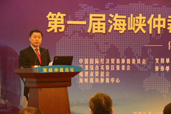 貿(mào)仲委暨海峽兩岸仲裁中心副主任兼秘書長王承杰致辭