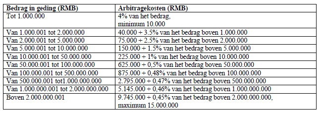 TARIEFLIJST III VOOR DE ARBITRAGEKOSTEN VAN DE CHINESE ARBITRAGECOMMISSIE VOOR INTERNATIONALE ECONOMIE EN HANDEL