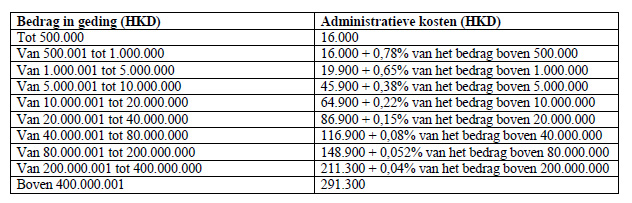 (Deze tarieflijst is van toepassing op arbitragezaken die beheerd worden door het CIETAC Hongkongse Arbitragecentrum volgens hoofdstuk VI van het Arbitragereglement)