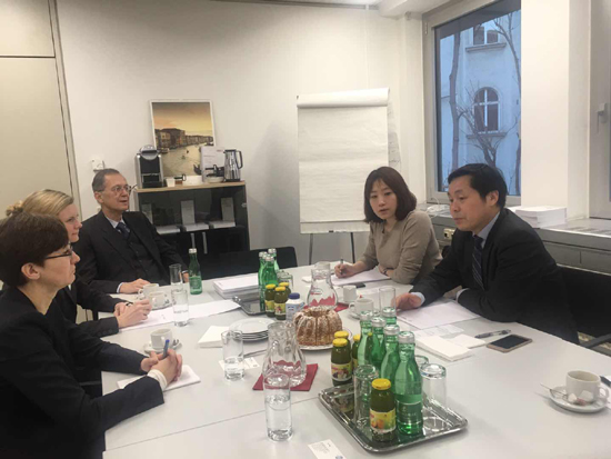 奧地利當?shù)貢r間2017年12月20日,貿(mào)仲委副主任兼秘書長王承杰一行還訪問了我駐奧地利共和國大使館,并與使館經(jīng)濟商務參贊高行樂進行了會談。