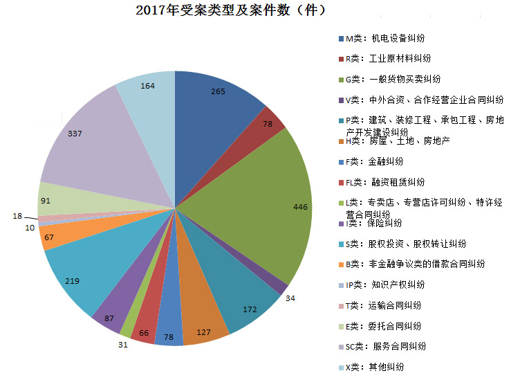 (一)仲裁案件數(shù)量、標(biāo)的額再創(chuàng)新高,仲裁服務(wù)質(zhì)量不斷提升。2017年,貿(mào)仲委受理仲裁案件總計(jì)2298件,同比增長(zhǎng)5.36%;其中,涉外案件476件,國(guó)內(nèi)案件1822件。涉案標(biāo)的額達(dá)人民幣718.88億元,同比增長(zhǎng)22.55%;其中,涉外案件標(biāo)的額達(dá)人民幣350.24億元,同比增長(zhǎng)127.11%;國(guó)內(nèi)案件標(biāo)的額達(dá)人民幣368.64億元,同比減少14.75%;標(biāo)的額上億元案件首次突破百件(達(dá)117件),同比增加42件。審結(jié)案件2273件,同比增長(zhǎng)7.67%。案件當(dāng)事人涉及60個(gè)國(guó)家和地區(qū),涉外案件平均標(biāo)的額達(dá)人民幣7350萬(wàn)元,主要當(dāng)事人來(lái)自美國(guó)、加拿大、巴西、墨西哥、德國(guó)、英國(guó)、法國(guó)、意大利、奧地利、荷蘭、南非、俄羅斯、澳大利亞、印度、日本、韓國(guó)、新加坡、香港等;適用英文、中英文作為仲裁語(yǔ)言的案件57件;外籍仲裁員47人共128人次參與審理案件71件。域名業(yè)務(wù)同期受理案件156件。