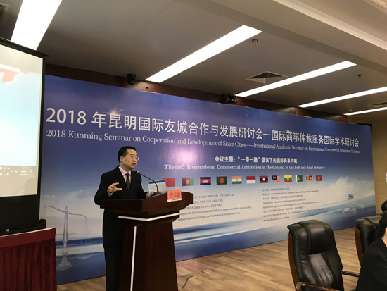 2018年6月15日,由云南昆明市委、市政府主辦,由云南財經(jīng)大學和昆明國家級經(jīng)濟技術開發(fā)區(qū)管理委員會承辦的“國際商事仲裁服務國際學術研討會”在昆明國家級經(jīng)濟技術開發(fā)區(qū)政務中心召開,來自老撾、孟加拉、柬埔寨、斯里蘭卡、印度、馬來西亞、巴基斯坦等8個國家、11所國內(nèi)高校,以及國內(nèi)法律界、仲裁界、工商界和學術界近300人出席參加會議。