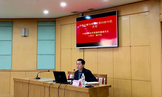 2018年10月23日,貿(mào)仲委副主任兼秘書長(zhǎng)王承杰應(yīng)國(guó)務(wù)院臺(tái)灣事務(wù)辦公室邀請(qǐng)為第十一期臺(tái)胞權(quán)益保護(hù)工作培訓(xùn)班授課。