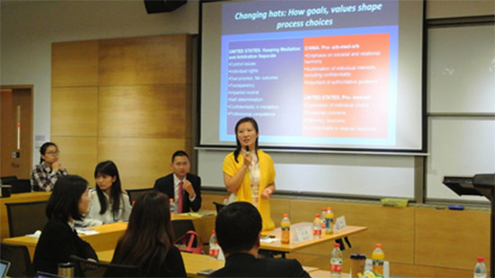 Stipanowich教授以中美兩國的對比為例,闡明了不同國家的文化、法律傳統(tǒng)對爭議解決領域產(chǎn)生的深刻影響。他還指出,爭議解決方式已經(jīng)不僅僅局限于單一的調(diào)解、仲裁、訴訟,“調(diào)解-仲裁”“仲裁-調(diào)解-仲裁”“協(xié)商-訴訟”等混合型爭議解決模式日益增加。他還對比了中美兩國從業(yè)人士對仲裁員在仲裁程序中同時擔任調(diào)解員涉及到“Changing Hats”問題的不同態(tài)度,并分析了法律文化根源。