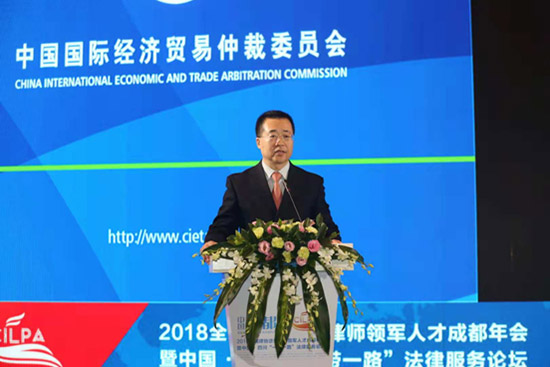 2018年10月27日, “2018全國律協(xié)涉外法律領(lǐng)軍人才成都年會暨中國四川一帶一路法律服務(wù)論壇”在成都舉行。論壇圍繞如何服務(wù)“一帶一路”建設(shè)搭建平臺、匯聚智慧,為推動更好地服務(wù)于“一帶一路”建設(shè)提供智力支持。最高人民法院副院長羅東川、四川省高級人民法院院長王樹江、四川省政法委副書記李世成、四川省司法廳廳長劉志誠、四川省商務(wù)廳廳長劉欣、成都市副市長王平江、成都市中院院長郭彥、成都市司法局局長袁宗勇出席會議。會議由全國律協(xié)副會長張學(xué)兵主持。全國涉外律師領(lǐng)軍人才和涉外律師代表近400人與會。
