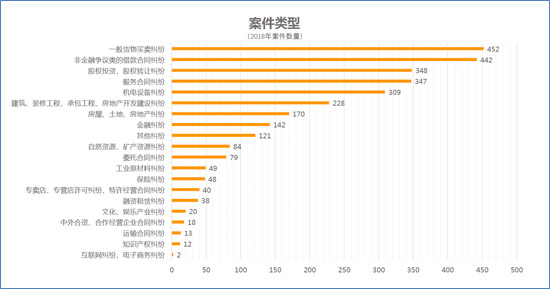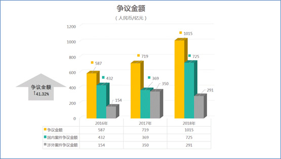 2018年,貿(mào)仲委受理仲裁案件總計2962件,同比增長28.89%;其中,涉外案件522件(雙方均為境外當(dāng)事人案件36件),同比增長9.66%;國內(nèi)案件2440件,同比增長33.92%。涉案標(biāo)的額首次突破千億元大關(guān)達(dá)人民幣1015.90億元,同比增長41.32%。標(biāo)的額上億元案件達(dá)171件,同比增長46.15%。審結(jié)案件2524件,同比增長11.04%。在辦案件2022件,同比增長28.3%。案件當(dāng)事人涉及60個國家和地區(qū),主要來自美國、加拿大、巴西、墨西哥、德國、英國、法國、意大利、西班牙、奧地利、荷蘭、南非、俄羅斯、澳大利亞、印度、日本、韓國、新加坡、香港等,涉及“一帶一路”沿線23個國家共73宗案件。適用英文、中英文、德文作為仲裁語言的案件79件。外籍仲裁員共59人次參與審理案件58件。案件類型主要包括一般貨物買賣糾紛、非金融爭議類借款合同糾紛、股權(quán)投資和股權(quán)轉(zhuǎn)讓糾紛、服務(wù)合同糾紛、機電設(shè)備糾紛、建筑工程糾紛等20種。域名業(yè)務(wù)同期受理案件172件,同比增長10.26%。