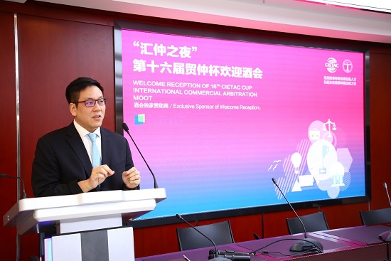 貿(mào)仲杯評(píng)委、Gilt Chambers大律師Eric Ng代表評(píng)委表達(dá)了對(duì)本屆“貿(mào)仲杯”辯論賽的期待以及對(duì)“貿(mào)仲杯”參賽隊(duì)員的期許。