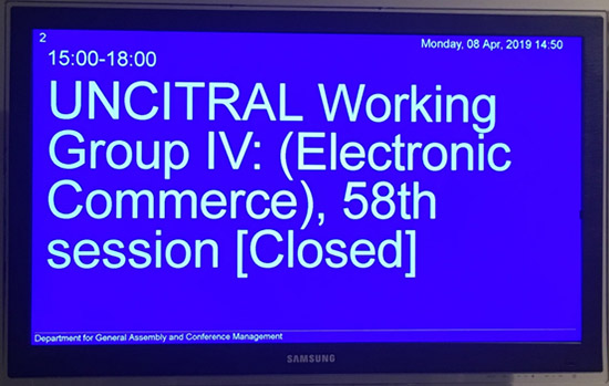 2019年4月8日至12日,聯(lián)合國國際貿(mào)易法委員會(以下簡稱“貿(mào)法會”)第四工作組(電子商務(wù))第58次會議在美國紐約聯(lián)合國總部召開。應(yīng)貿(mào)法會秘書長的邀請,貿(mào)仲委作為觀察員,派代表參加了會議。