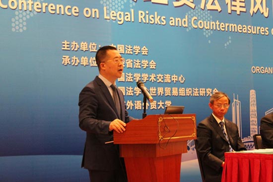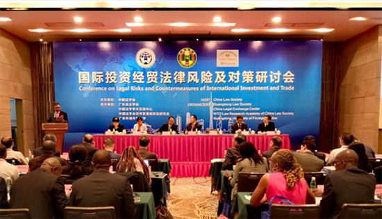 2019年6月20日,第六屆“國(guó)際投資經(jīng)貿(mào)法律風(fēng)險(xiǎn)與對(duì)策研討會(huì)”在廣州舉行。本次會(huì)議由中國(guó)法學(xué)會(huì)主辦,由廣東省法學(xué)會(huì)、中國(guó)法學(xué)學(xué)術(shù)交流中心、中國(guó)法學(xué)會(huì)世界貿(mào)易組織法研究會(huì)和廣東外語外貿(mào)大學(xué)共同承辦。研討會(huì)以“深化‘一帶一路’法治合作,共建開放型世界經(jīng)濟(jì)”為主題,圍繞“維護(hù)多邊貿(mào)易體制與WTO改革中國(guó)方案”“落實(shí)中非合作‘八大行動(dòng)’的法治保障”“‘一帶一路’沿線地區(qū)投資法律環(huán)境”和“中國(guó)企業(yè)境外法律風(fēng)險(xiǎn)防范與爭(zhēng)端解決機(jī)制”等議題展開討論。廣東省法學(xué)會(huì)常務(wù)副會(huì)長(zhǎng)陳文敏、印度律師協(xié)會(huì)候任會(huì)長(zhǎng)普利桑特·庫馬(Prashant Kumar)和中國(guó)法學(xué)會(huì)副會(huì)長(zhǎng)兼秘書長(zhǎng)張鳴起出席會(huì)議并致開幕詞。來自36個(gè)國(guó)家和地區(qū)的200多位法學(xué)界和工商界代表參加了會(huì)議。