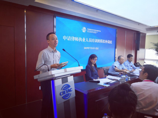 2019年7月12日上午,由中國國際經(jīng)濟(jì)貿(mào)易仲裁委員會(以下簡稱“貿(mào)仲委”)、北京市律師協(xié)會、中國政法大學(xué)共同主辦的第83期“申請律師執(zhí)業(yè)人員培訓(xùn)班——商事仲裁實(shí)務(wù)培訓(xùn)”模擬仲裁庭在國際商會大廈九層多功能廳舉行,約150名北京市的實(shí)習(xí)律師參加了培訓(xùn)活動。