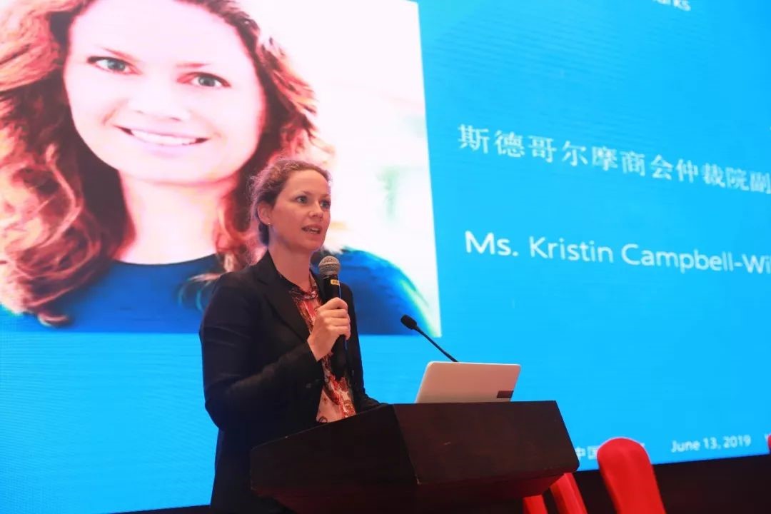 Kristin Campbell-Wilson女士代表主辦方SCC致辭,她首先表達了對貿(mào)仲委及中國貿(mào)促會湖北自貿(mào)試驗區(qū)服務(wù)中心的感謝。她表示,SCC與貿(mào)仲委之間在長達幾十年的交往中建立了深厚的友誼,雙方互相學習借鑒,共同為國際仲裁社區(qū)的成長作出了重要貢獻。SCC自1917年成立至今已逾百年,在“一帶一路”倡議下,SCC面臨著許多機遇與挑戰(zhàn),希望借助此次研討會,貿(mào)仲委與SCC能一同探討國際仲裁的新發(fā)展,助力“一帶一路”建設(shè)。