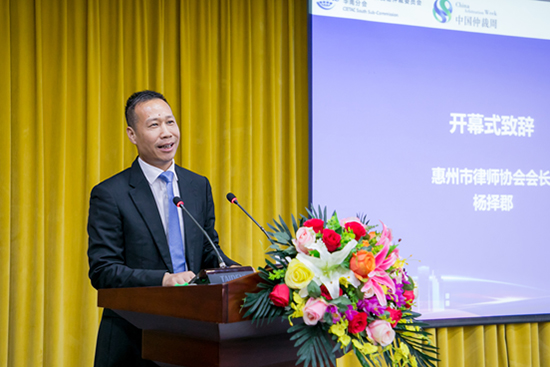(惠州仲裁委員會副主任林銳先生致辭)