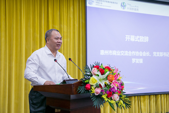 (惠州市商業(yè)交流合作協(xié)會會長、黨支部書記羅發(fā)銀先生致辭)