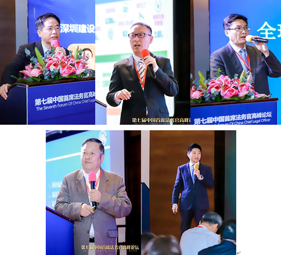 (從左至右,從上至下分別為:廣東省法學(xué)會(huì)副會(huì)長、廣東省法學(xué)會(huì)港澳臺(tái)法研究會(huì)會(huì)長蔡鎮(zhèn)順,富士康工業(yè)互聯(lián)網(wǎng)股份有限公司副總裁兼首席法務(wù)官解辰陽, 中興通訊獨(dú)立董事、杰瑞集團(tuán)副總裁兼首席法務(wù)官鮑毓明,招商局前總法律顧問王春閣,順豐集團(tuán)首席風(fēng)控官、總法律顧問孫遜)