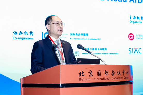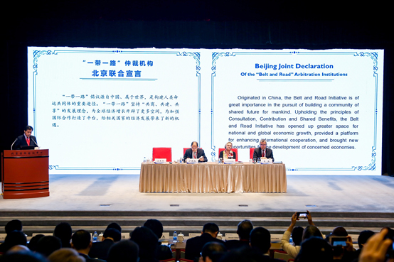 (貿(mào)仲副主任兼秘書長王承杰宣讀并發(fā)布《“一帶一路”仲裁機(jī)構(gòu)北京聯(lián)合宣言》)