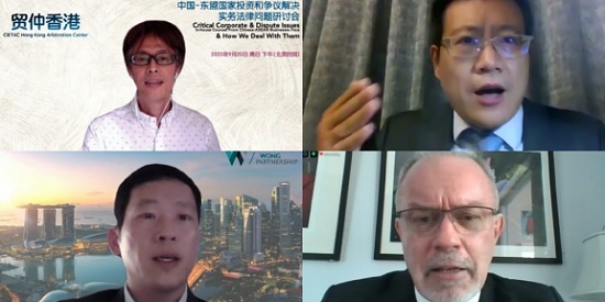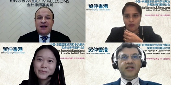 2020年第一季度,中國與東盟國家貨物貿(mào)易總額達到9913.4億元人民幣,同比增長6.1%。東盟也歷史性地成為中國第一大貿(mào)易伙伴。為此,2020年9月20日下午,貿(mào)仲香港仲裁中心有針對性地在2020年“中國仲裁周”期間成功舉辦了“中國-東盟國家投資和爭議解決實務(wù)法律問題研討會”。本次研討會通過Zoom平臺以線上直播的方式展開,吸引了來自世界各地(尤其是東盟國家)超過300名公司法務(wù)、資深仲裁員、知名律師、專家學(xué)者等在線參會。