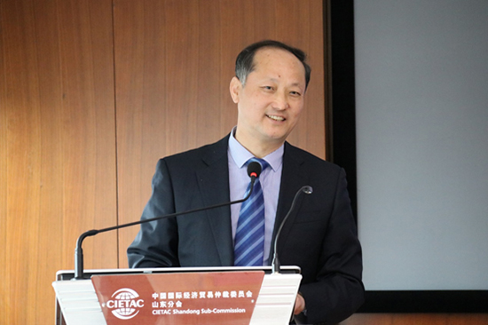 (貿(mào)仲仲裁院副院長兼山東分會秘書長解常晴致辭)