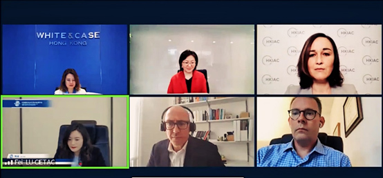 發(fā)布會隨后進入專題討論階段,由偉凱律師事務(wù)所倫敦辦公室合伙人David Robertson先生,空中客車公司高級副總裁兼訴訟、調(diào)查與監(jiān)管部負責人、香港國際仲裁中心理事Karl Hennessee先生,香港國際仲裁中心秘書長Sarah Grimmer女士,匯仲律師事務(wù)所合伙人、貿(mào)仲仲裁員蔣弘女士以及貿(mào)仲事業(yè)發(fā)展處副處長陸菲女士分別從當事人、仲裁員以及仲裁機構(gòu)等角度就報告涉及的重點內(nèi)容分享了看法與經(jīng)驗。討論主要內(nèi)容包括仲裁地及仲裁機構(gòu)的選擇,如何簡化程序、提高仲裁效率,線上庭審的優(yōu)勢與劣勢以及網(wǎng)絡(luò)安全對仲裁的影響和仲裁中的多樣性等問題。討論過程中,陸菲女士著重介紹了貿(mào)仲在疫情發(fā)生后所采取的一系列舉措以及在促進多樣性方面所作出的努力。
