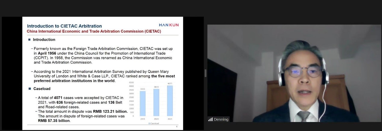 貿(mào)仲仲裁員崔軍先生和金立宇先生作為演講人分別以“巴基斯坦1940年仲裁法與中巴經(jīng)濟(jì)走廊工程項(xiàng)目爭(zhēng)議解決”和“中國(guó)仲裁法律制度與貿(mào)仲仲裁”為主題進(jìn)行了分享。通過(guò)展示大量的數(shù)據(jù)與經(jīng)典案例,他們向與會(huì)人員介紹了中巴兩國(guó)在仲裁等爭(zhēng)議解決領(lǐng)域的法律規(guī)范與實(shí)踐,還就涉“一帶一路”建設(shè)工程爭(zhēng)議解決中應(yīng)當(dāng)注意的仲裁員利益沖突問題以及作為外方當(dāng)事人如何參與中國(guó)仲裁程序等內(nèi)容進(jìn)行了深入細(xì)致的講解,獲得廣大觀眾的一致好評(píng)。