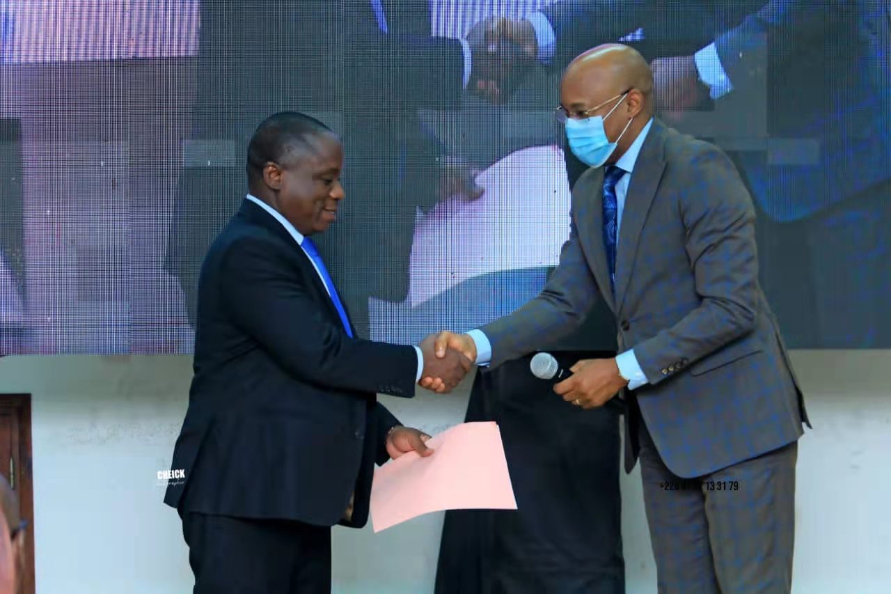 (圖為科方代表梅特先生將《合作協(xié)議》呈送科特迪瓦外交部代表)