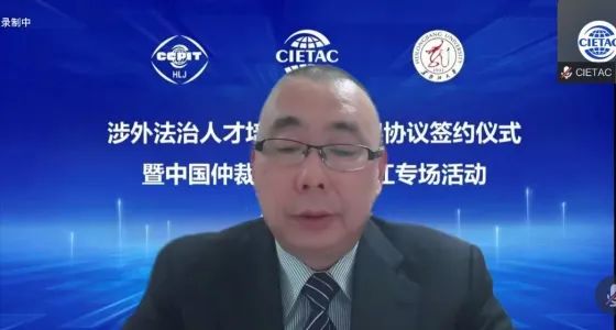 2022年11月24日,中國(guó)國(guó)際經(jīng)濟(jì)貿(mào)易仲裁委員會(huì)(“貿(mào)仲”)與中國(guó)國(guó)際貿(mào)易促進(jìn)委員會(huì)黑龍江省委員會(huì)(“黑龍江貿(mào)促會(huì)”)、黑龍江大學(xué)共同舉辦中國(guó)仲裁周黑龍江專場(chǎng)活動(dòng),以線上方式舉行三方“涉外法治人才培養(yǎng)合作框架協(xié)議”(“《合作協(xié)議》”)簽約儀式及“國(guó)際商事仲裁新發(fā)展”專題講座。