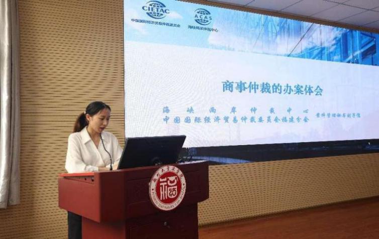 貿(mào)仲福建分會辦案秘書林麗珍和劉子儒分別從商事仲裁特點(diǎn)及仲裁程序、商事仲裁的辦案體會兩個方面分享了仲裁實(shí)務(wù)經(jīng)驗(yàn),讓廣大師生對國際商事仲裁有了更加深入的了解。