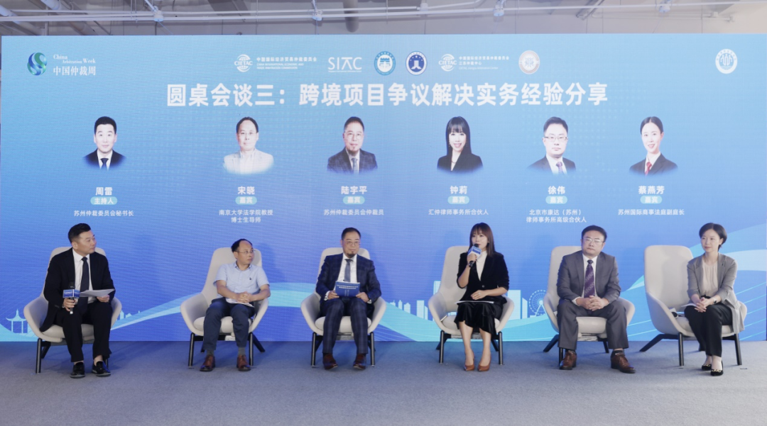 第三個(gè)議題“跨境項(xiàng)目爭議解決實(shí)務(wù)經(jīng)驗(yàn)分享”由蘇州仲裁委員會(huì)秘書長周雷主持。貿(mào)仲仲裁員、南京大學(xué)法學(xué)院教授、博士生導(dǎo)師宋曉,蘇州仲裁委員會(huì)仲裁員陸宇平,匯仲律師事務(wù)所合伙人鐘莉,北京市康達(dá)(蘇州)律師事務(wù)所高級合伙人徐偉,蘇州國際商事法庭副庭長蔡燕芳分別發(fā)言。各位嘉賓圍繞如何充分發(fā)揮仲裁爭議解決方式的作用,跨境項(xiàng)目合同在磋商、訂立與履行過程中就爭議解決需要注意的問題,實(shí)務(wù)中如何更好地適應(yīng)國際商事仲裁與國內(nèi)仲裁程序的差異以及第三方資助給國際商事仲裁實(shí)踐帶來的法律問題進(jìn)行了熱烈的討論。