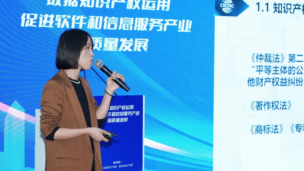 隨后,在主題演講環(huán)節(jié),貿(mào)仲江蘇中心秘書長助理孫靜女士以“知識產(chǎn)權(quán)仲裁促進高質(zhì)量發(fā)展”為題發(fā)表演講,她從知識產(chǎn)權(quán)仲裁的相關(guān)立法出發(fā),介紹了知識產(chǎn)權(quán)仲裁的范圍,并就知識產(chǎn)權(quán)仲裁的優(yōu)勢和企業(yè)進行知識產(chǎn)權(quán)仲裁的策略進行了詳盡介紹。江蘇省知識產(chǎn)權(quán)保護中心運用促進部部長丁甜女士以“數(shù)據(jù)知識產(chǎn)權(quán)登記與運用”為題介紹了數(shù)據(jù)知識產(chǎn)權(quán)申請人進行登記的實務操作流程和注意要點。